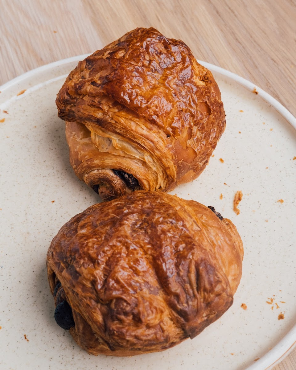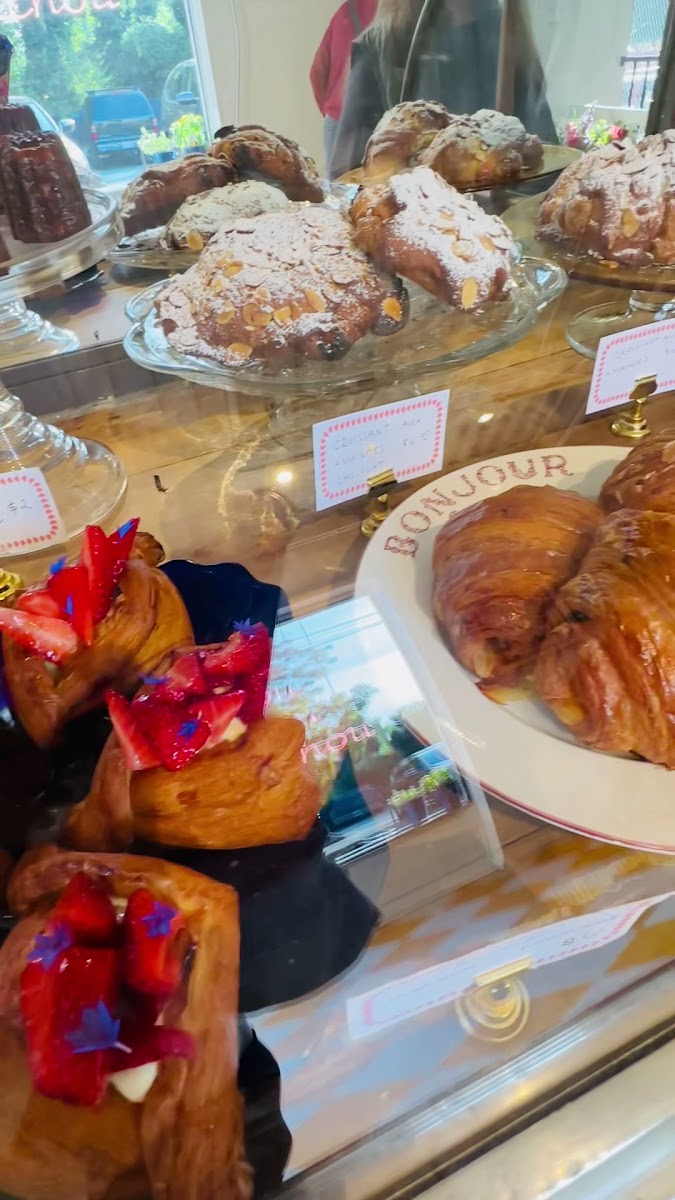 An adorable French bakery cafe where you can see them prepping food so you know everything is made in house and fresh! The interior is lovely with some seating inside and outside although limited. I went within an hour of closing but there were still some items to choose from thankfully. I purchased a chocolate croissant for $7 and it was delightfully light, soft but with the texture of the many layers it was baked with. The chocolate wasn’t too sweet but had enough chocolate where I’m not looking for it. The staff are incredibly friendly and sweet. The parking lot was a great bonus. I’ll be back to try more items on their menu!