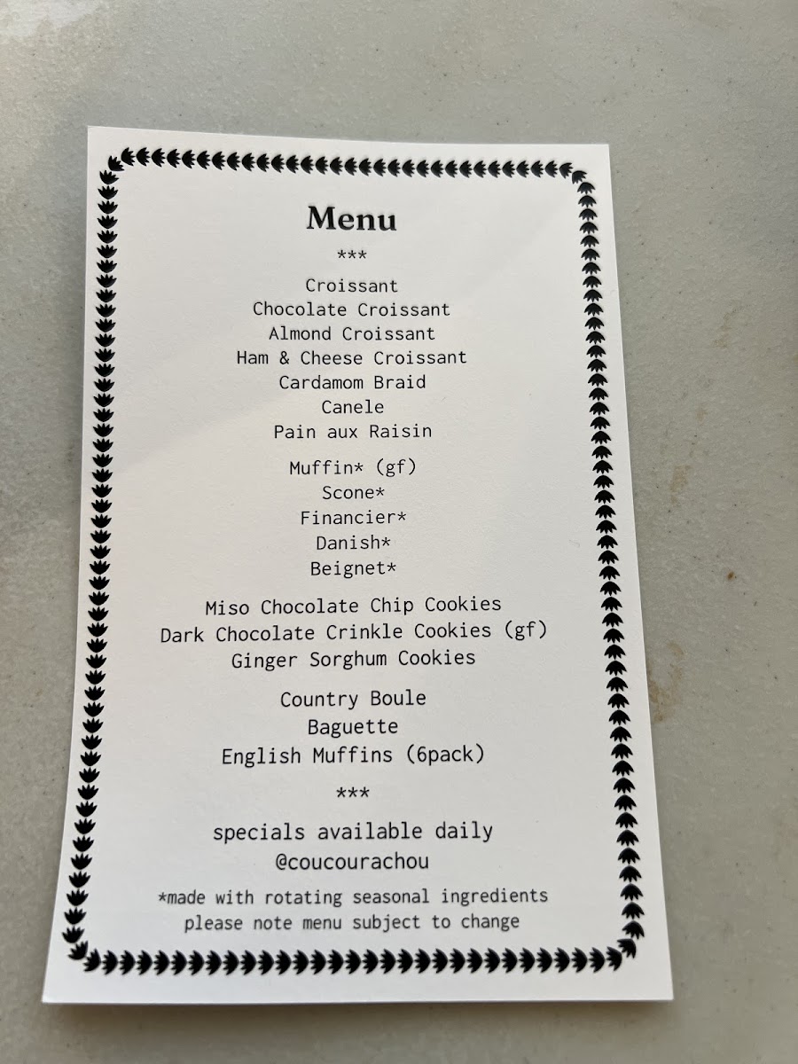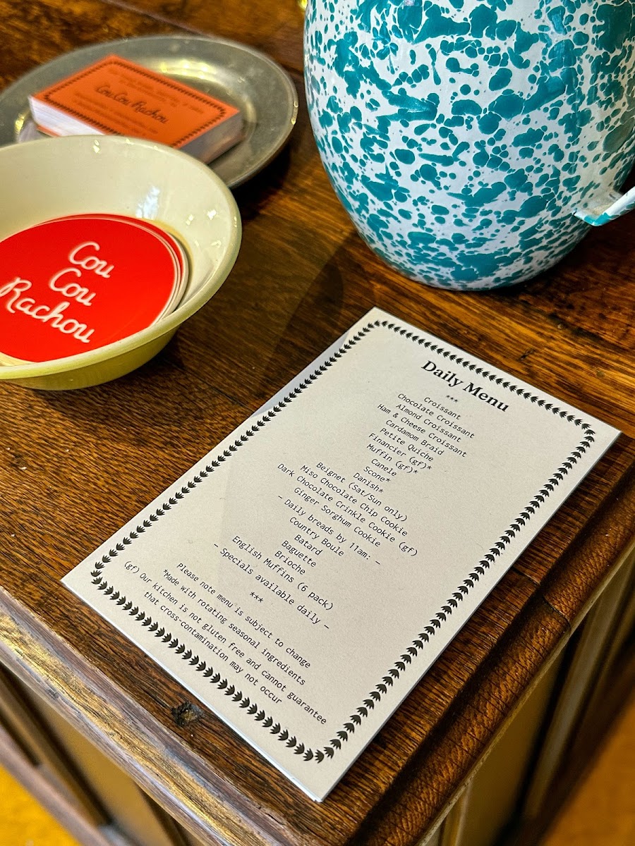 Cou Cou Rachou offers a thoughtfully curated menu that blends classic French bakery staples with comforting café beverages. The selection focuses on fresh, handcrafted pastries and breads, providing simple yet satisfying options for breakfast, brunch, or a relaxed afternoon treat.